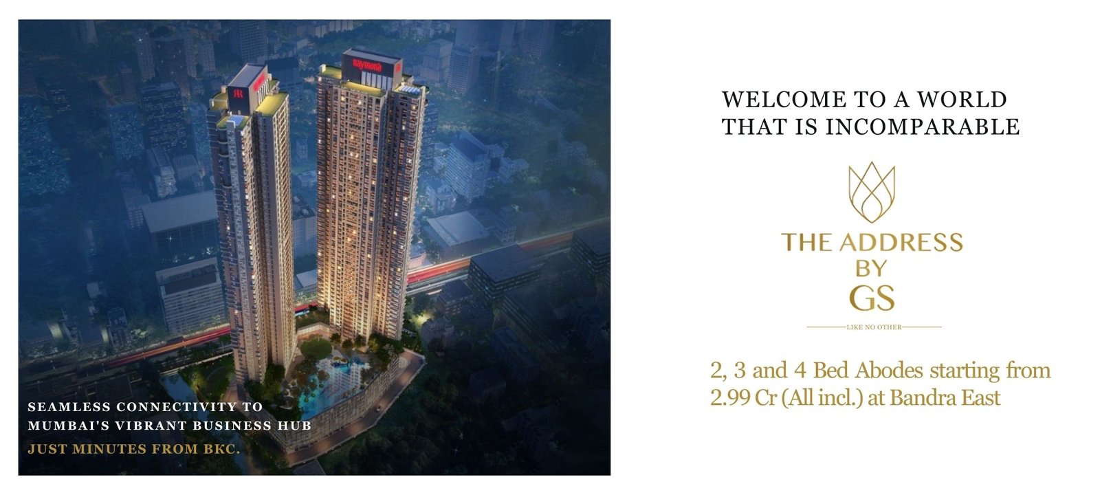 Raymond Realty – The Address By GS Bandra East. Strategically located near the bustling business hub of BKC, this premium development ensures seamless connectivity for both professionals and families. With its prime location and world-class amenities, Raymond Realty BKC redefines urban living, offering unmatched convenience and sophistication. Extending its allure to nearby areas such as Nirmal Nagar, The Address Bandra East stands as a symbol of exclusivity and modern luxury. This project embodies timeless elegance, providing residents with a lifestyle that perfectly balances opulence and contemporary living.